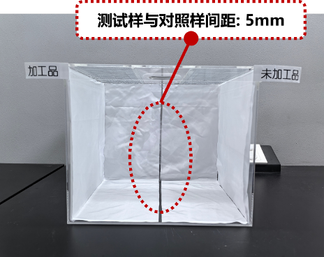 測試采用對照實驗法,將一定數(shù)量的蚊蟲置于貼有測試樣(防蚊面料)和對照樣(普通面料)的封閉空間內(nèi),在規(guī)定時間內(nèi),分別統(tǒng)計蚊蟲在兩種面料表面的停落數(shù)量。試樣表面停留的蚊蟲越少,表明防蚊性能越強。