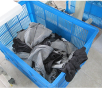 改善前:帶孔洞的周轉筐藏灰納垢,深色木質筐易掉色、掉渣,淺色服裝一沾就中招,臟污 + 異物混入投訴不斷!