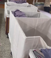 改善后:定制罩布將周轉筐全部罩起(淺于成品色),不僅徹底隔絕灰塵,還能預防異物混入。