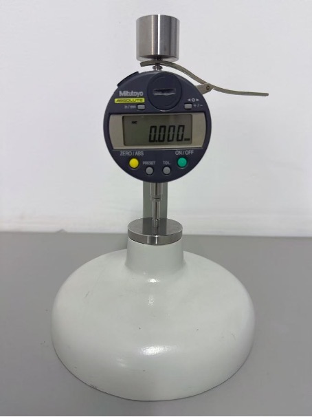 在產品表面平整處用鋒利的刀片裁切材料,使用精密測厚儀測定材料厚度。